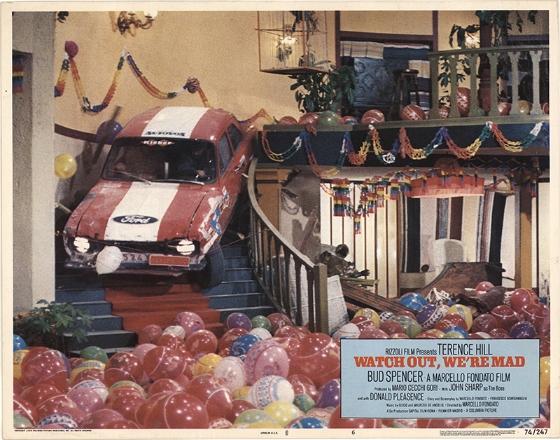 Es folgen viele Prügeleien und ausgedehnte Actionszenen, wobei das Finale im Hauptquartier des Gangsterbosses in einem Meer aus Luftballons stattfindet. Bei diesen Szenen wurde machmal auch deutliches speedup eingesetzt, was heißt, dass man die Szenen mit erhöhter Geschwindigkeit spielen lies. Dadurch wirkt die Action noch Slapstick-artiger und wie aus einem alten Cartoon. Neben den feinen Prügeleien gibt es diesmal auch ungewöhnlich gute motorisierte Action. Für die vielen Auto- und Motorradstunts hat man nämlich extra den französischen Stuntman Rémy Julienne und dessen Crew mit an Board geholt. Julienne arbeitete zunächst bei einigen Louis de Funès-Filmen mit, später war er auch bei vielen James Bond-Produktionen für Stunts mitverantwortlich.