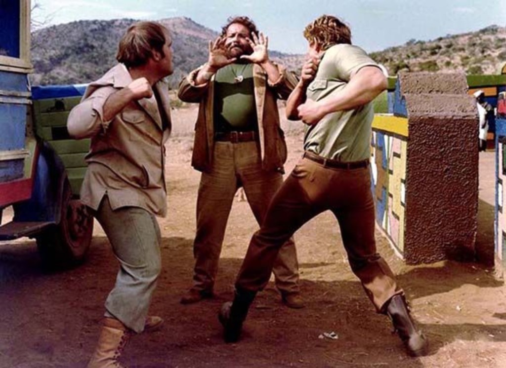 Die Animosität zwischen Spencer und Hill ist hier fast wieder so stark wie in Die rechte und die linke Hand des Teufels, auch wenn das Ganze freilich nicht so gut funktioniert wie in diesem früheren Klassiker. Das Krokodil und sein Nilpferd ist ein gemächlicher, unspektakulärer Film mit vielen Blödeleien, dummen Sprüchen und den gewohnten Prügeleien. Ex-Schwergewichtsmeister Joe Bugner, der zuvor neben Spencer als Stürmer in Sie nannten ihn Mücke zu sehen war, gibt hier den reichen, kultivierten Oberfiesling Ormond. Als Kind nannte ich den Film „Das Nilpferd und sein Krokodil“, was viel besser von der Zunge geht als „Das Krokodil und sein Nilpferd“. Und ich finde, so hätte man ihn auch nennen sollen.