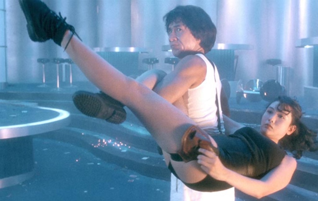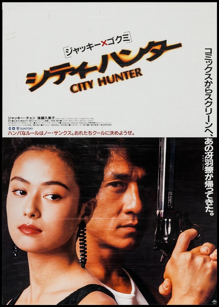 Jackie war damals so beliebt in Japan, dass er einen Film für den japanischen Markt machen wollte. Bei einer Umfrage unter seinen japanischen Fans, welchen Charakter er verkörpern sollte, stand Ryo Saeba a.k.a. City Hunter an der Spitze der Wunschliste. Also entstand Jackies einzige Comicverfilmung, die auf dem beliebten Manga basiert. Die „City Hunter“-Mangahefte habe ich nie gelesen, aber einige Folgen der Anime-Serie, die auf ihnen basiert. Üblicherweise halten sich Anime-Versionen streng an die Vorlage und auch der Realfilm kommt verdammt nahe an den Stil der Serie heran.