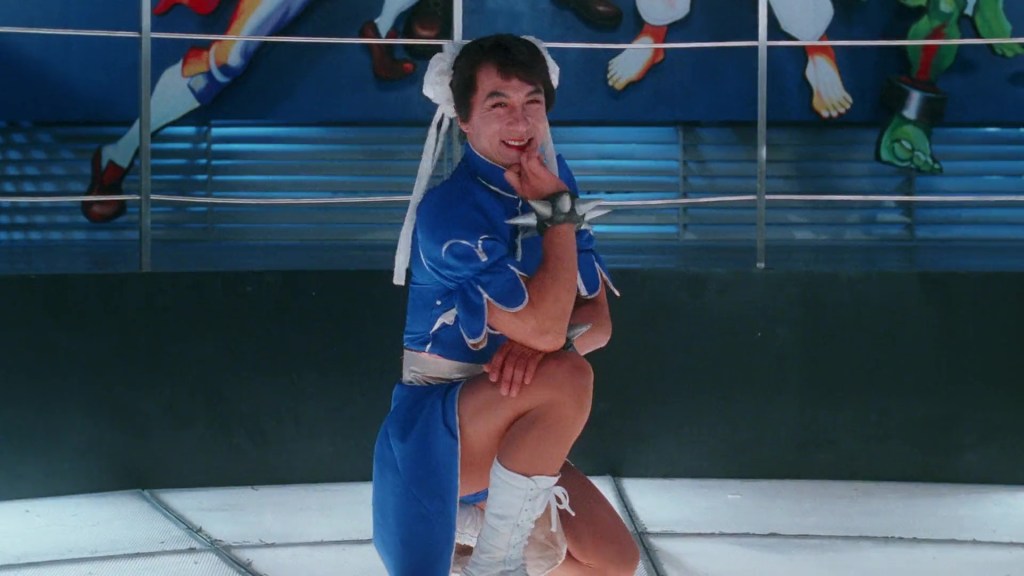Übrigens finde ich es nach wie vor beschämend, dass in in der deutschen Synchronfassung von City Hunter der Schlachtruf „Yoga Fire!“ mit „Feuer frei!“ übersetzt wurde. Wenn man keine Ahnung von ikonischen Meilensteinen der Videospielgeschichte hat, oder keinen Respekt vor ihnen, sollte man wohl auch keine Synchronregie übernehmen. Eine letzte Anmerkung noch zu der Szene: Der „Street Fighter“-Sumoringer E. Honda wurde im Film zu „E. Honde“ umgetauft, da Jackie damals einen Vertrag mit Mitsubishi hatte, und die nicht den Namen eines ihrer Markt-Konkurrenten im Film sehen wollten (Es kommt allerdings mindestens ein Honda-Wagen in dem Film vor, der aber nicht von Jackie gefahren wird).