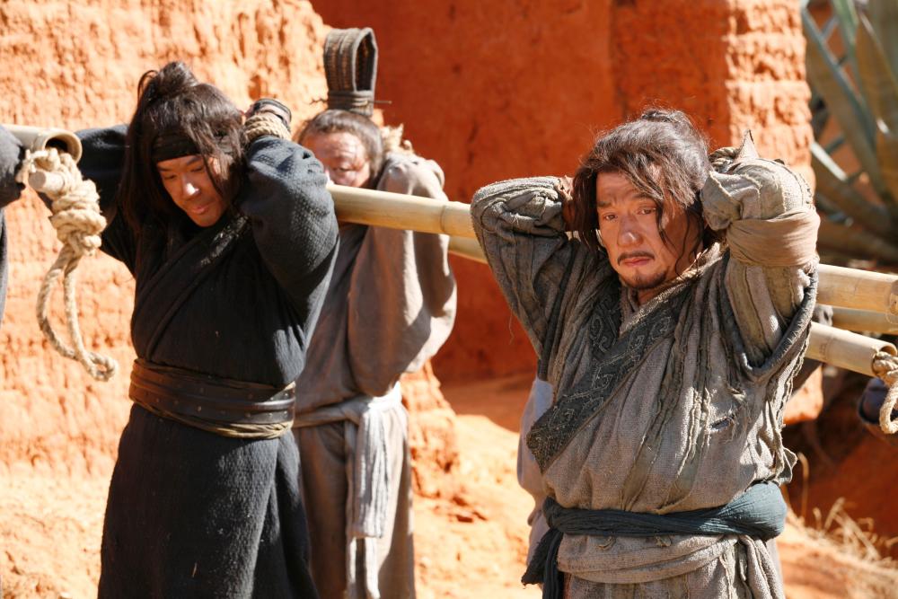 227 vor Christus, in der „Zeit der Streitenden Reiche“: Nach einer verheerenden Schlacht (die wir nicht sehen, da der Film zwar im Krieg spielt, aber kein Kriegsfilm ist) zwischen den Yan und den Wei gibt es nur zwei Überlebende: Ein alter Yan-Soldat (Jackie) und ein hochrangiger Offizier der gegnerischen Wei-Armee. Der trickreiche Soldat, der um jeden Preis überleben will und alles andere als ein Held ist, hat Fake-Pfeile in seiner Rüstung und sich während der Schlacht tot gestellt. Als die Luft rein ist, schnappt er sich den Offizier, den er für einen General hält und will für ihn ein hohes Lösegeld kassieren. Ich könnte mich täuschen, aber ich glaube der Name des Soldaten wird nie genannt. Im Abspann ist er einfach als „the Soldier“ aufgeführt, sein Gegenüber als „the General“.