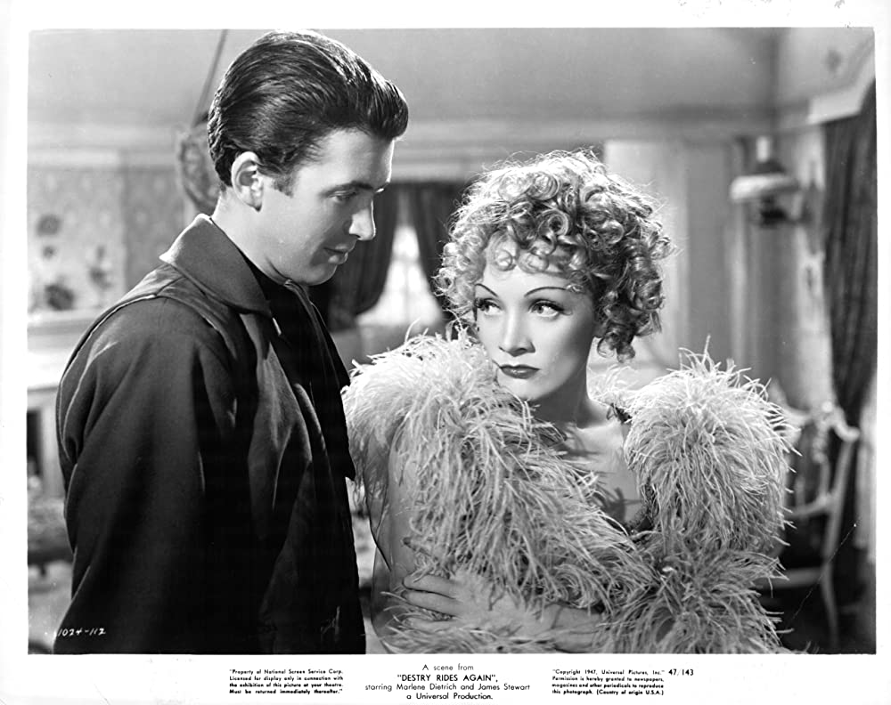 Die Westernkomödie Destry Rides Again zeigt James Stewart und Marlene Dietrich in Rollen, die ihnen auf den Leib geschrieben scheinen. In der kleinen Westernstadt Bottleneck geht es wild her. Im Saloon kennt man weder Manieren noch Gesetze, betrinkt sich, tanzt und wenn man besonders gut drauf ist, ballert man mit seinen Schießeisen in der Luft herum. Im ersten Stock des Saloons geht es etwas ruhiger zu, dort trifft man sich zu einer gepflegten Runde Poker und kann dabei sein ganzes Hab und Gut verlieren.